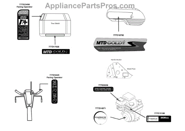 Parts for Mtd Gold 21B-39M8704 / 2013: Label Map 21B-39M8704 Parts