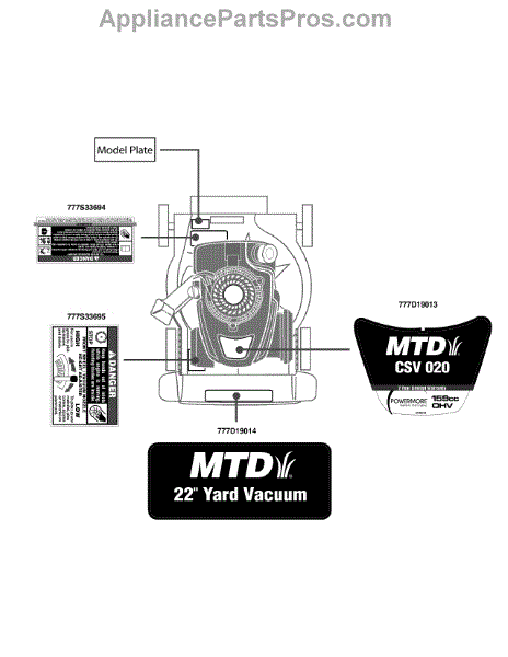 Parts for Mtd 24A-02MP706 / 2013: Label Map 24A-02Mp706 Parts