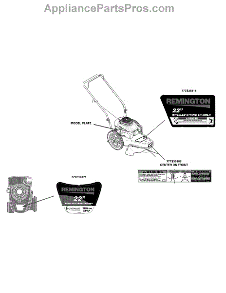 Parts for Remington 25A-262J783 / 2014: Label Map 25A-262J783 Parts