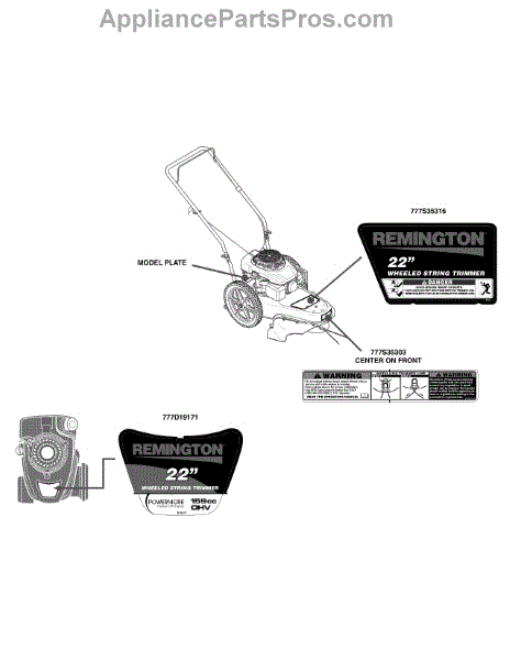 Parts for Remington 25A-26J7783 / 2014: Label Map 25A-26J7783 Parts