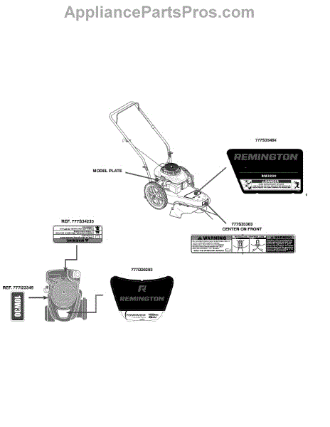 Parts for Remington 25A-26J7783 / 2015: Label Map 25A-26J7783 Parts