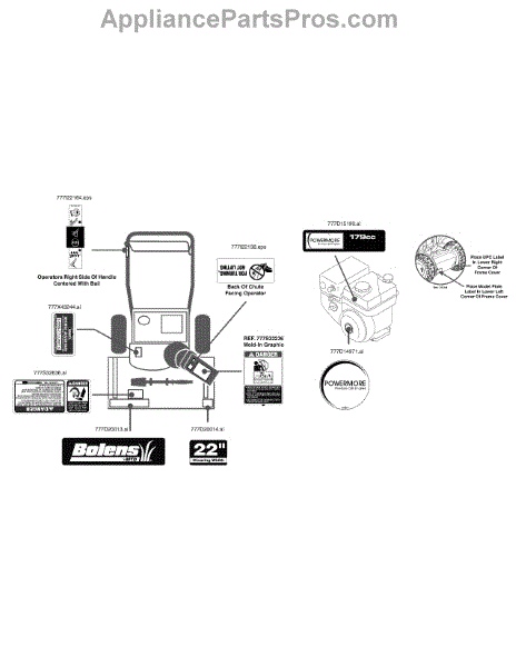 Parts for Bolens 31A-32AD765 / 2014: Label Map 31A-32Ad765 Parts