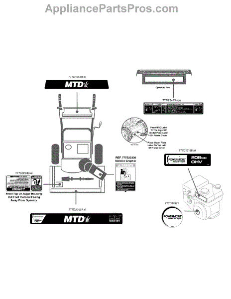 Parts for Mtd 31A-63BD706 / 2015: Label Map 31A-63Bd706 Parts