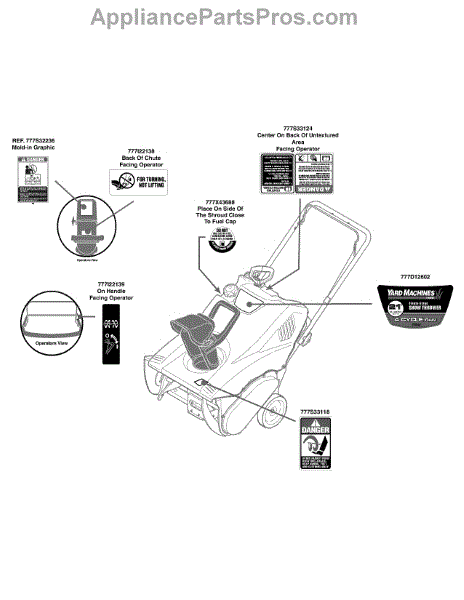 Parts for Yard Machines 31A-2M1A700 / 2010: Label Map 31A-2M1a700 Parts