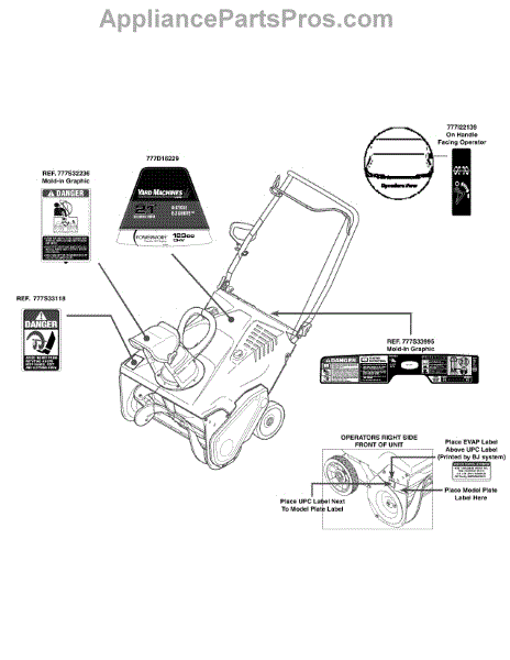 Parts for Yard Machines 31A-2M1E700 / 2013: Label Map 31A-2M1e700 Parts