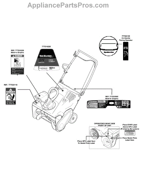 Parts for Yard Machines 31A-2M1E752 / 2013: Label Map 31A-2M1e752 Parts