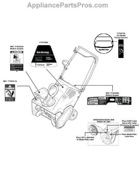 Parts for Yard Machines 31A-2M1E752 / 2014: Label Map 31A-2M1e752 Parts