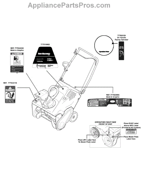 Parts for Yard Machines 31A-2M1E752 / 2015: Label Map 31A-2M1e752 Parts