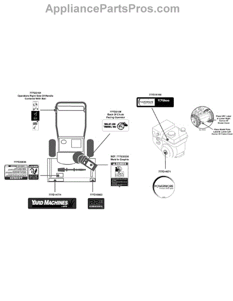 Parts for Yard Machines 31A-32AD700 / 2014: Label Map 31A-32Ad700 Parts