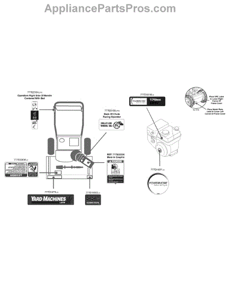 Parts for Yard Machines 31A-32AD700 / 2015: Label Map 31A-32Ad700 Parts