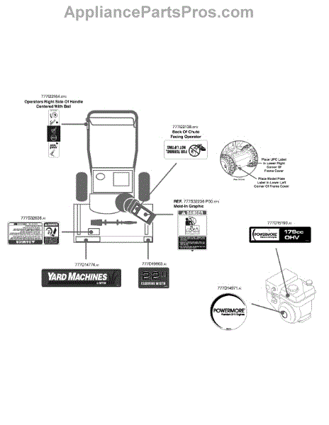Parts for Yard Machines 31A-32AD752 / 2015: Label Map 31A-32Ad752 Parts