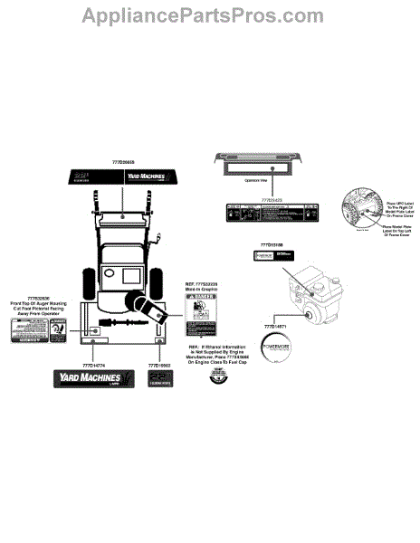 Parts for Yard Machines 31A-63BD700 / 2014: Label Map 31A-63Bd700 Parts