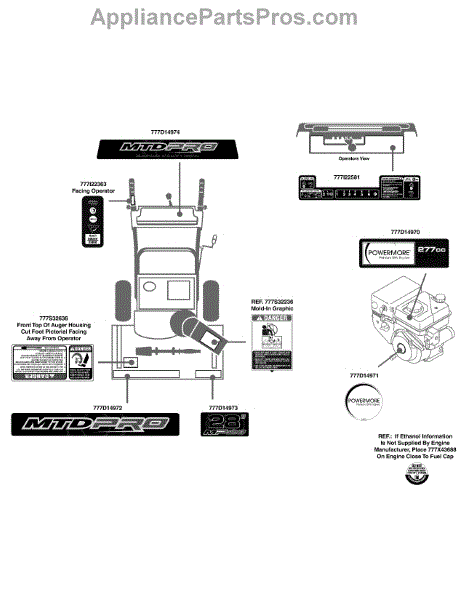 Parts for Mtd Pro 31AH64EG795 / 2010: Label Map 31Ah64eg795 Parts