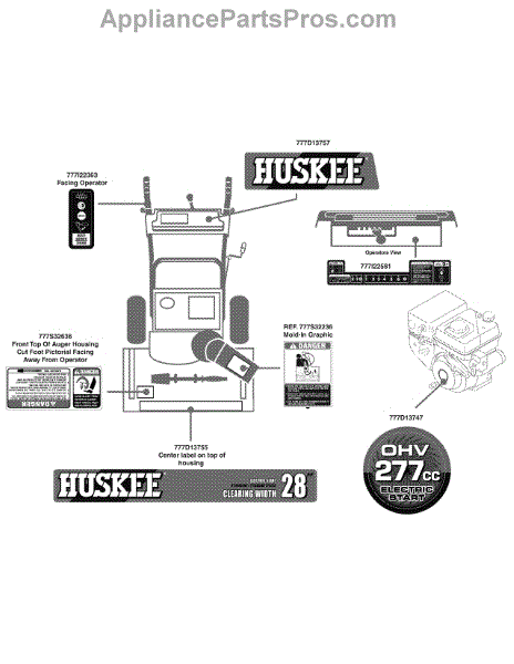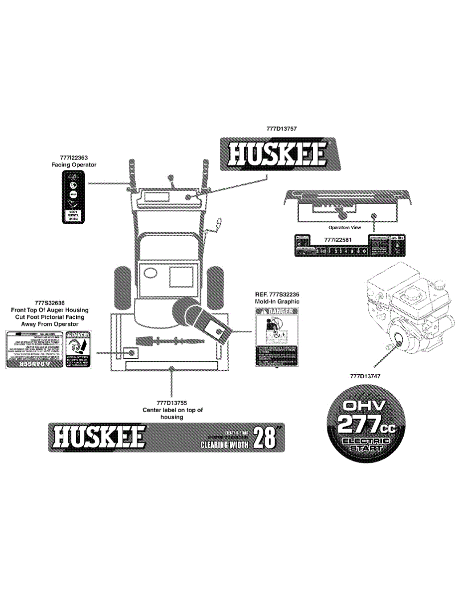 Parts for Huskee / Husky 31AH64FG731 / 2009: Label Map 31Ah64fg731 Parts