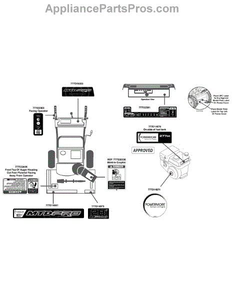 Parts for Mtd Pro 31AH64FG795 / 2012: Label Map 31Ah64fg795 Parts