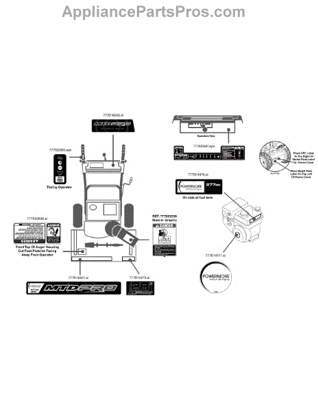 Parts for Mtd Pro 31AH64FG795 / 2014: Label Map 31Ah64fg795 Parts