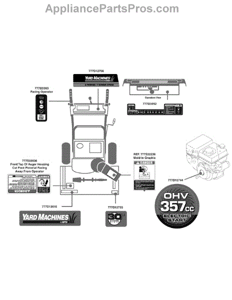 Parts for Yard Machines 31AH65FH700 / 2009: Label Map 31Ah65fh700 Parts