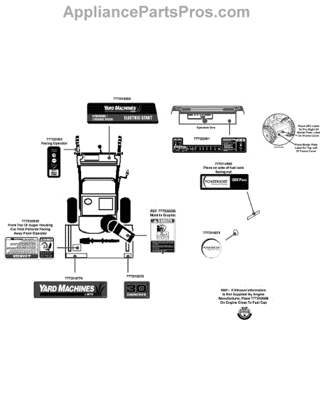 Parts for Yard Machines 31AH65FH700 / 2012: Label Map 31Ah65fh700 Parts