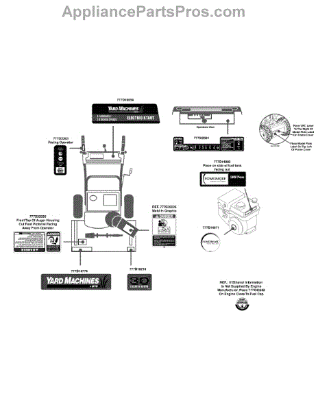 Parts for Yard Machines 31AH65FH700 / 2013: Label Map 31Ah65fh700 Parts