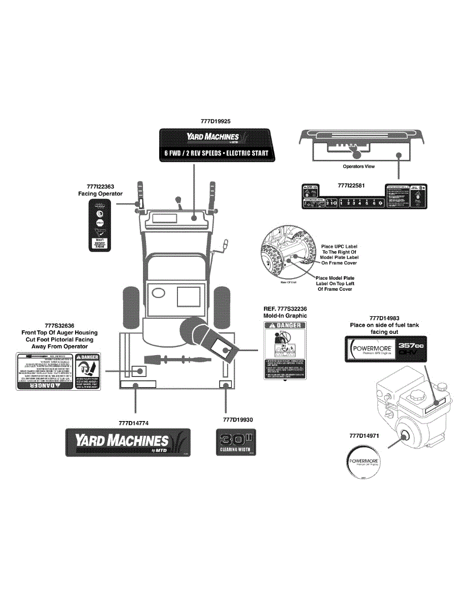 Parts for Yard Machines 31AH65FH700 / 2015: Label Map 31Ah65fh700 Parts