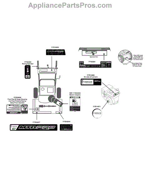 Parts for Mtd Pro 31AH65FH795 / 2013: Label Map 31Ah65fh795 Parts