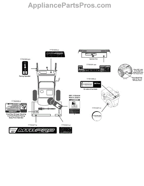 Parts for Mtd Pro 31AH65FH795 / 2014: Label Map 31Ah65fh795 Parts