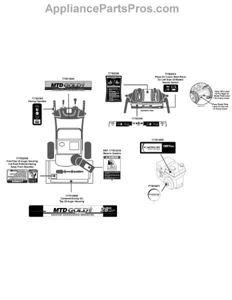 Replace the housing label on your snow thrower if it's faded, peeled, or missing. This decal restores identification and safety markings on the exterior.