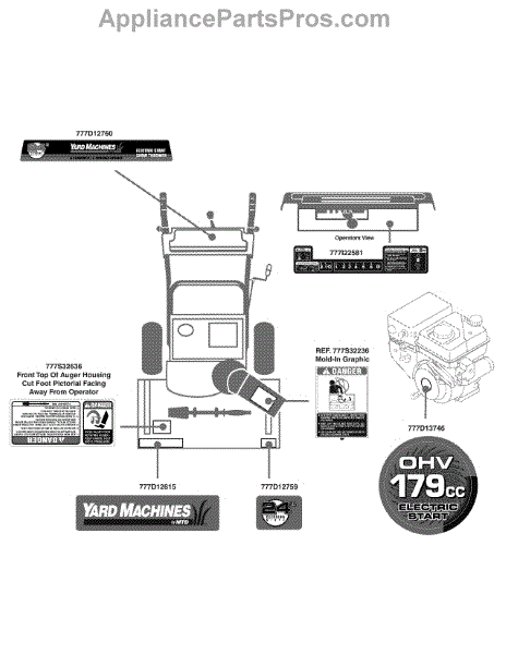 Parts for Yard Machines 31AM62EE700 / 2009: Label Map 31Am62ee700 Parts