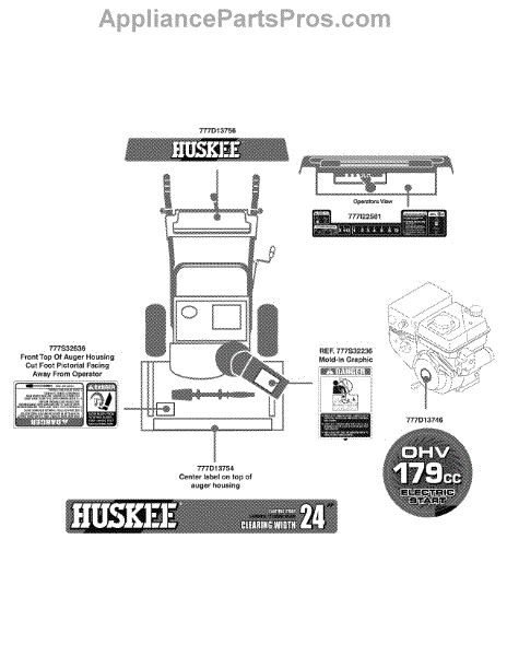 Parts for Huskee / Husky 31AM62EE731 / 2009: Label Map 31Am62ee731 Parts