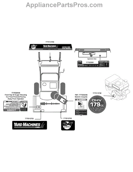 Parts for Yard Machines 31AM62EE752 / 2009: Label Map 31Am62ee752 Parts