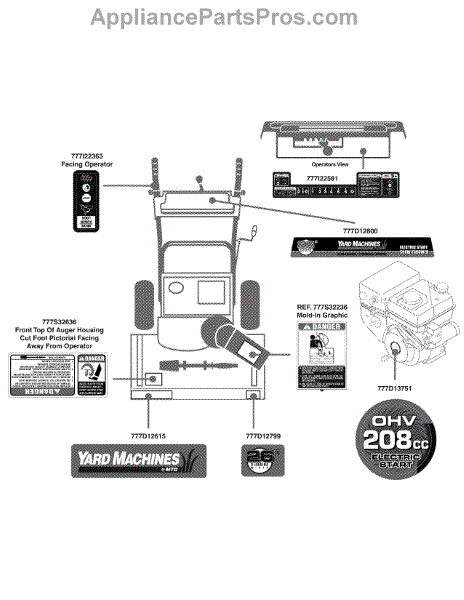 Parts for Yard Machines 31AM63EF729 / 2009: Label Map 31Am63ef729 Parts