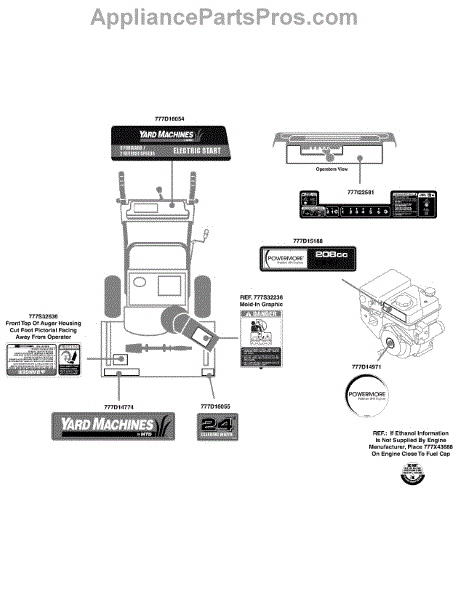 Parts for Yard Machines 31AM63FE752 / 2011: Label Map 31Am63fe752 Parts