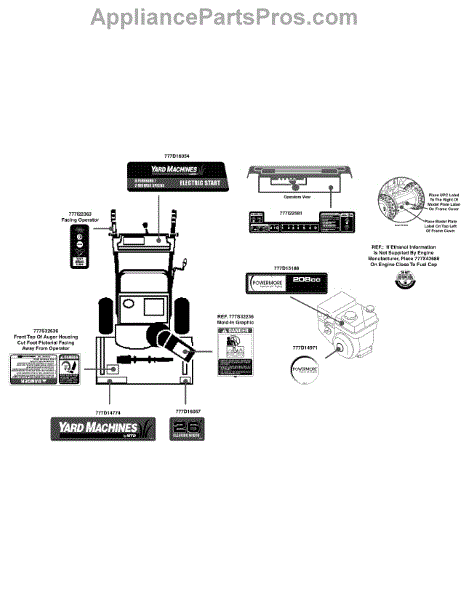 Parts for Yard Machines 31AM63FF752 / 2012: Label Map 31Am63ff752 Parts