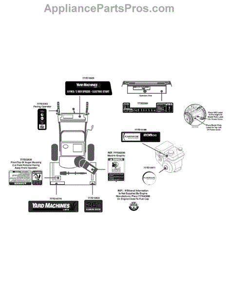 Parts for Yard Machines 31AM63FF752 / 2014: Label Map 31Am63ff752 Parts