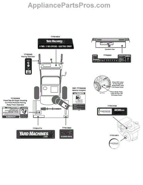 Parts for Yard Machines 31AM63FF752 / 2015: Label Map 31Am63ff752 Parts