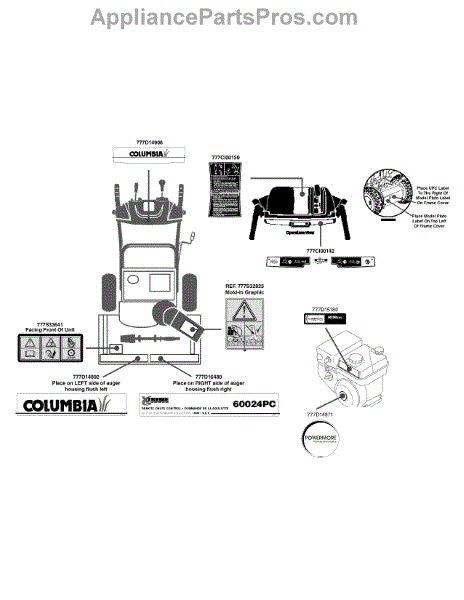 Parts for Columbia 31AM63K2897 / 2012: Label Map 31Am63k2897 Parts