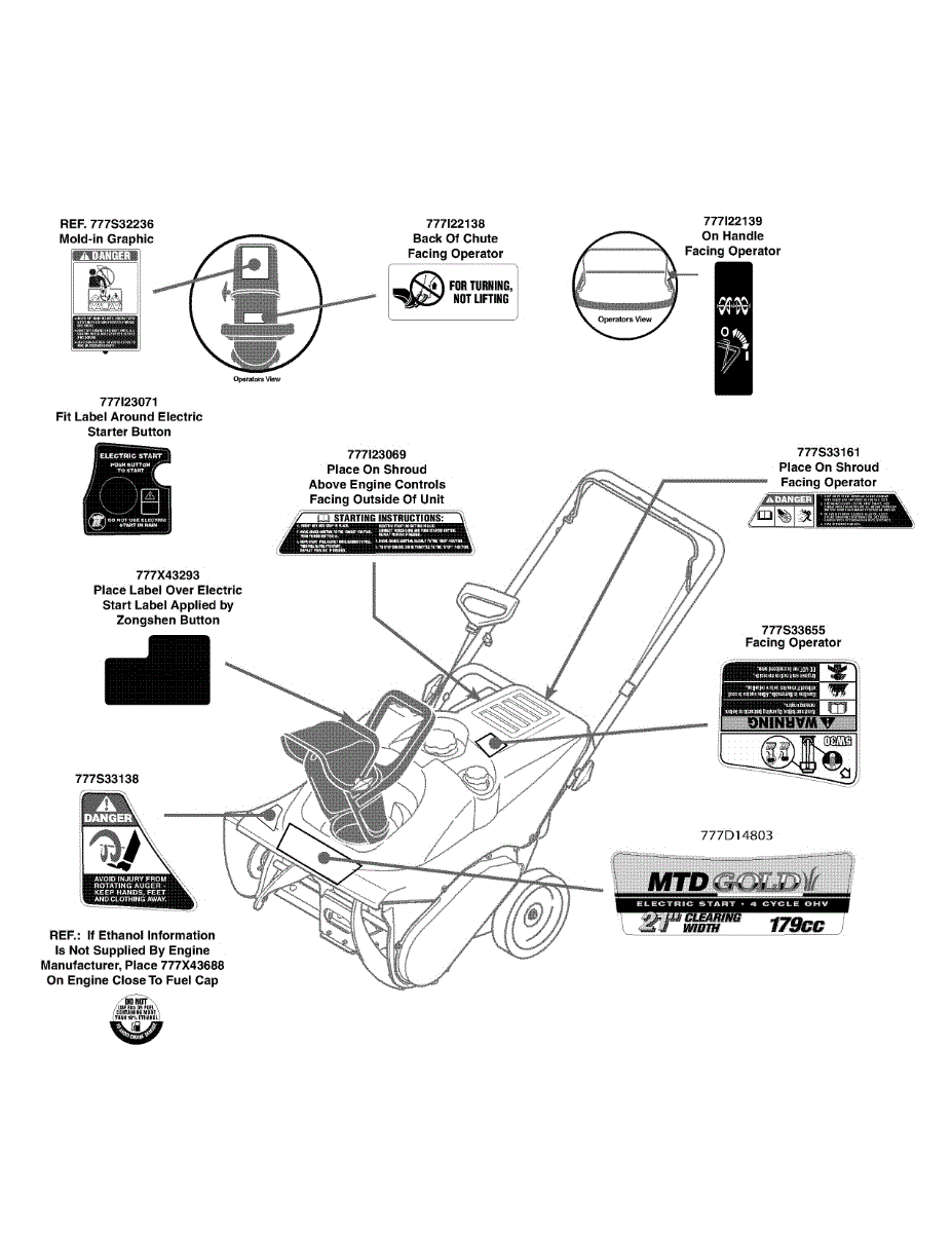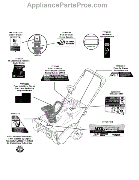 Parts for Mtd Gold 31AS2N1C704 / 2010: Label Map 31As2n1c704 Parts