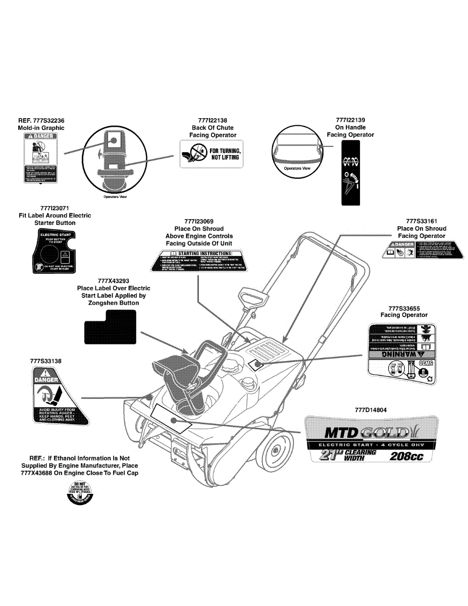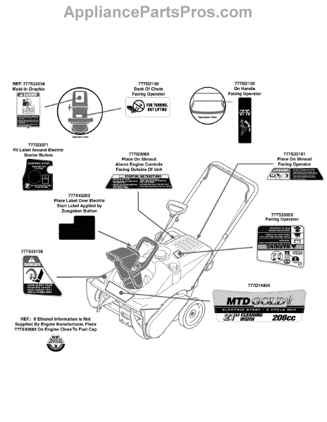 Parts for Mtd Gold 31AS2P5C704 / 2010: Label Map 31As2p5c704 Parts