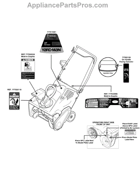 Parts for Yard-Man 31AS2S1E701 / 2013: Label Map 31As2s1e701 Parts