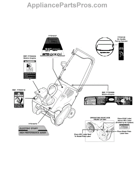 Parts for Mtd Gold 31AS2S1E704 / 2013: Label Map 31As2s1e704 Parts