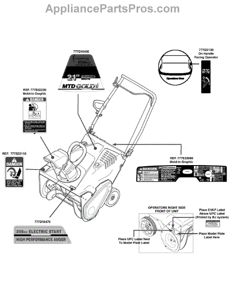 Parts for Mtd Gold 31AS2T5E704 / 2012: Label Map 31As2t5e Parts