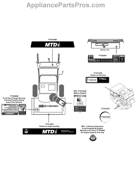 Parts for Mtd 31AS62EE706 / 2010: Label Map 31As62ee706 Parts
