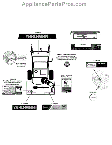 Parts for Yard-Man 31AS63EE701 / 2012: Label Map 31As63ee701 Parts
