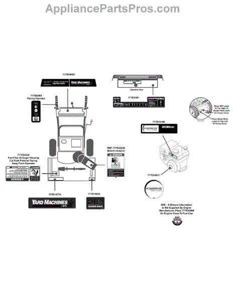 Parts for Yard Machines 31AS63EF700 / 2014: Label Map 31As63ef700 Parts