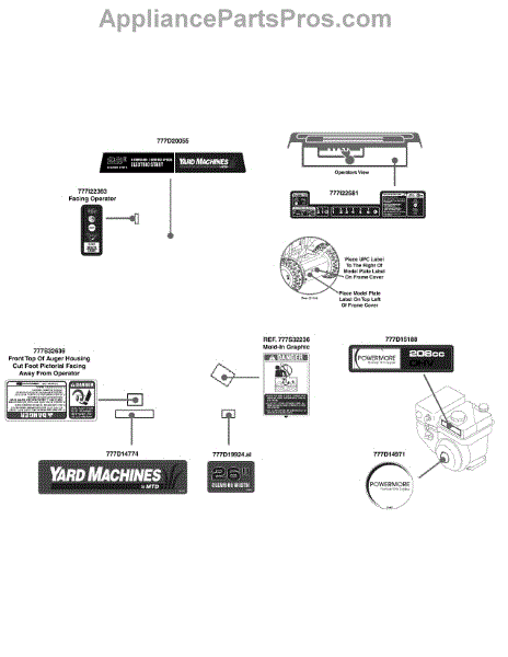 Parts for Yard Machines 31AS63EF729 / 2015: Label Map 31As63ef729 Parts