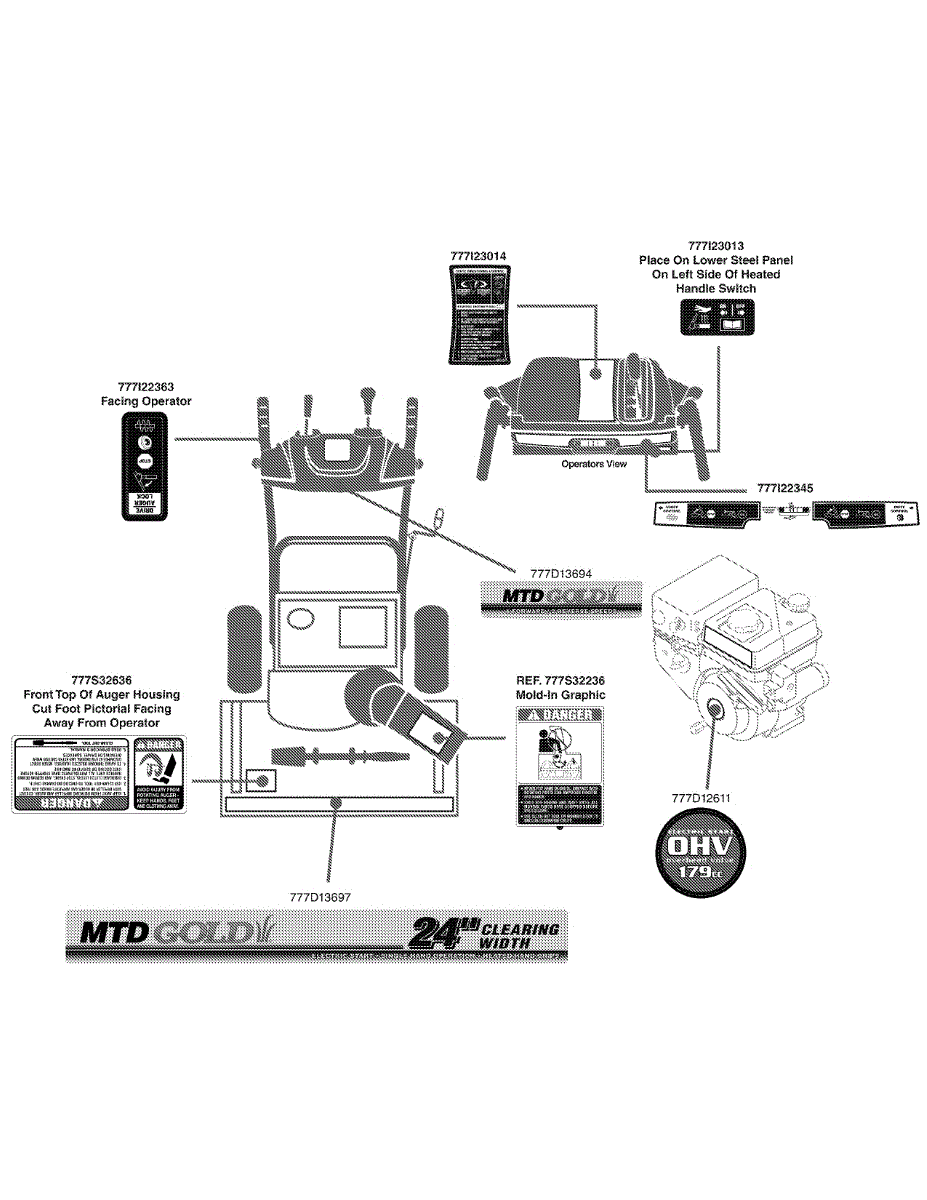 Replace the housing label on your snow thrower if it's faded, peeled, or missing. This decal restores identification and safety markings on the exterior.