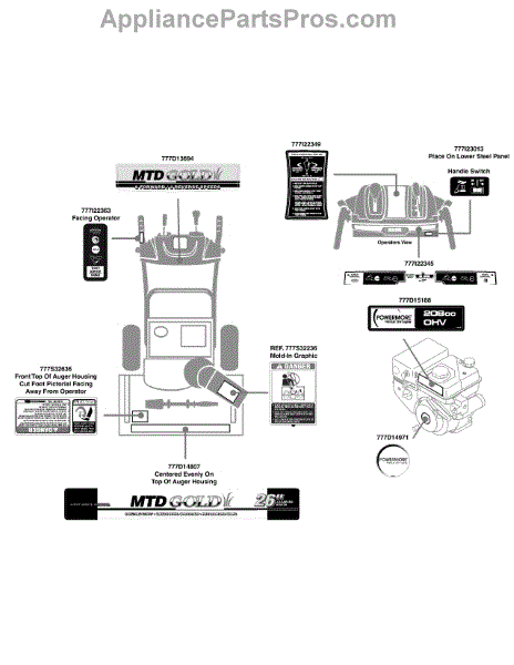 Parts for Mtd Gold 31BM63LF704 / 2011: Label Map 31Bm63lf704 Parts