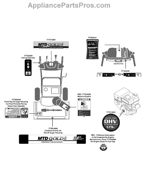 Parts for Mtd Gold 31CM62KE704 / 2010: Label Map 31Cm62ke704 Parts