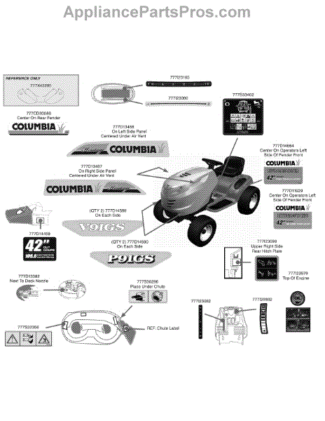 Parts for Columbia 13AP91GS897 / 2010: Label Map 42-Inch Parts