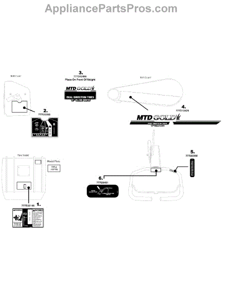 Parts for Mtd Gold 21AB452A004 / 2008: Label Map 452 Parts